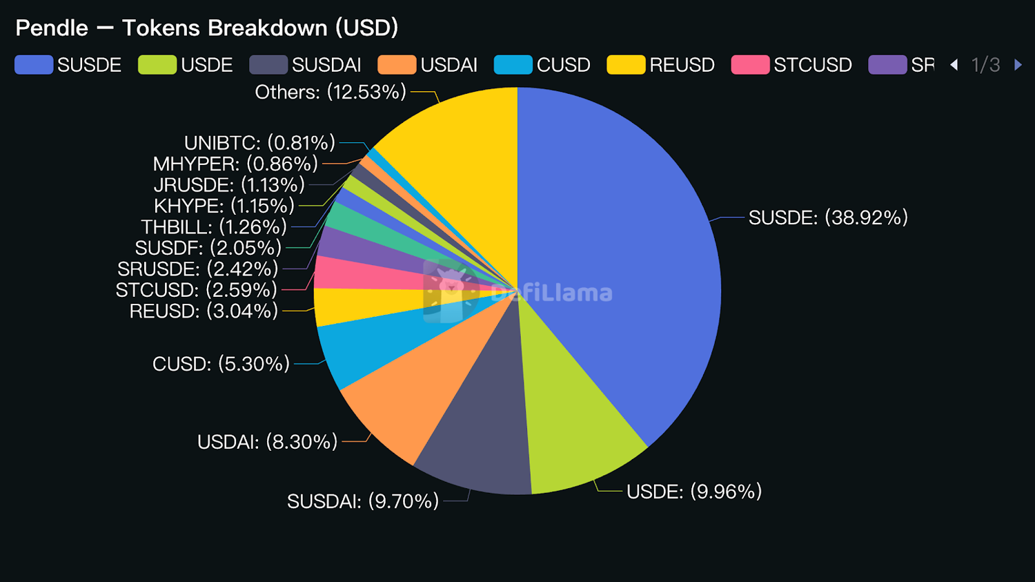 At that time, 70% of the stablecoins on Pendle consisted of USDe and its derivatives; even now, these assets still account for 50% of its locked capital. The primary driver was Ethena’s USDe, which offered yields consistently higher than LSTs like Lido, while Pendle provided the mechanism to achieve high-leverage returns. For instance, users could stake PT (Principal Tokens) as collateral for loans, convert those funds back into USDe, and create a looping leverage strategy.