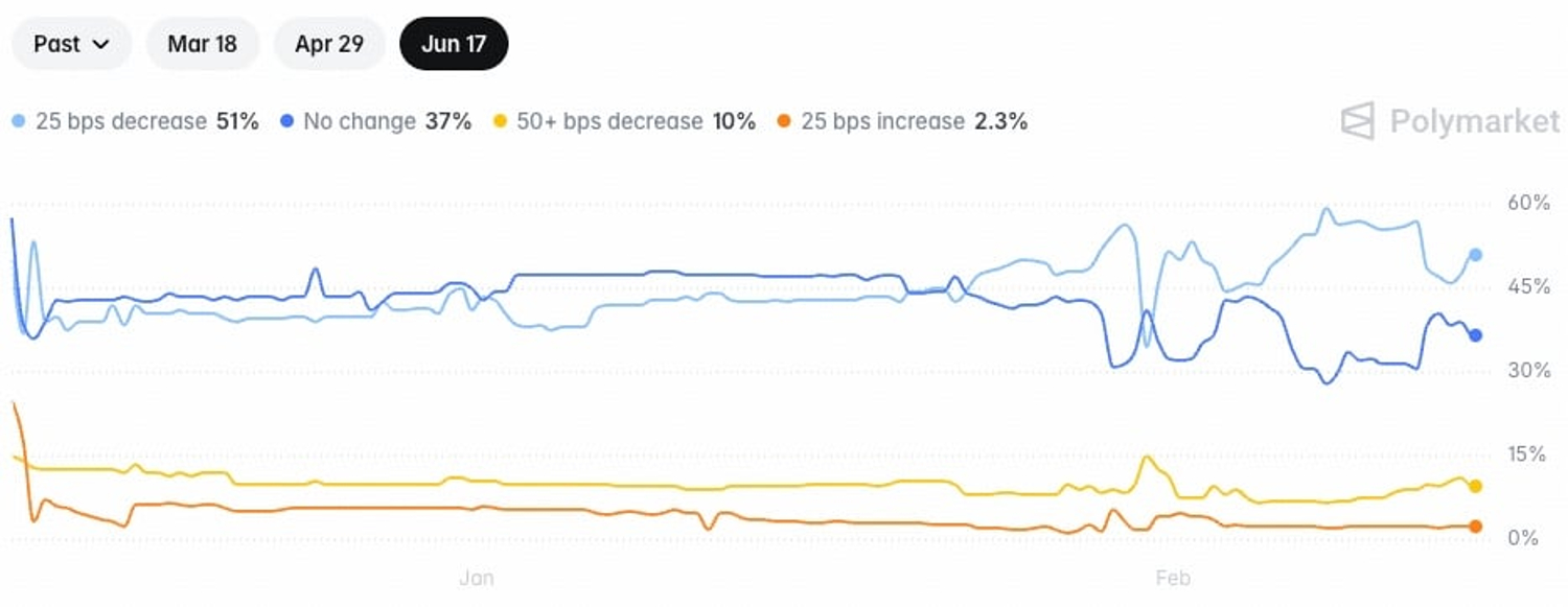 Currently, markets are pricing in more than 60% odds of a rate cut by the June meeting.