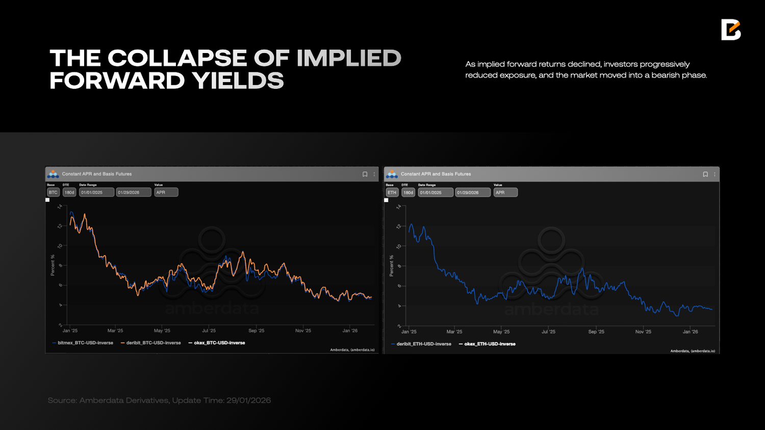 High funding costs constrain positioning. When a risk asset’s implied forward return falls below Treasury yields, holding that risk asset long-term becomes unattractive. Crypto is a textbook example: as implied forward returns declined, investors progressively reduced exposure, and the market moved into a bearish phase.